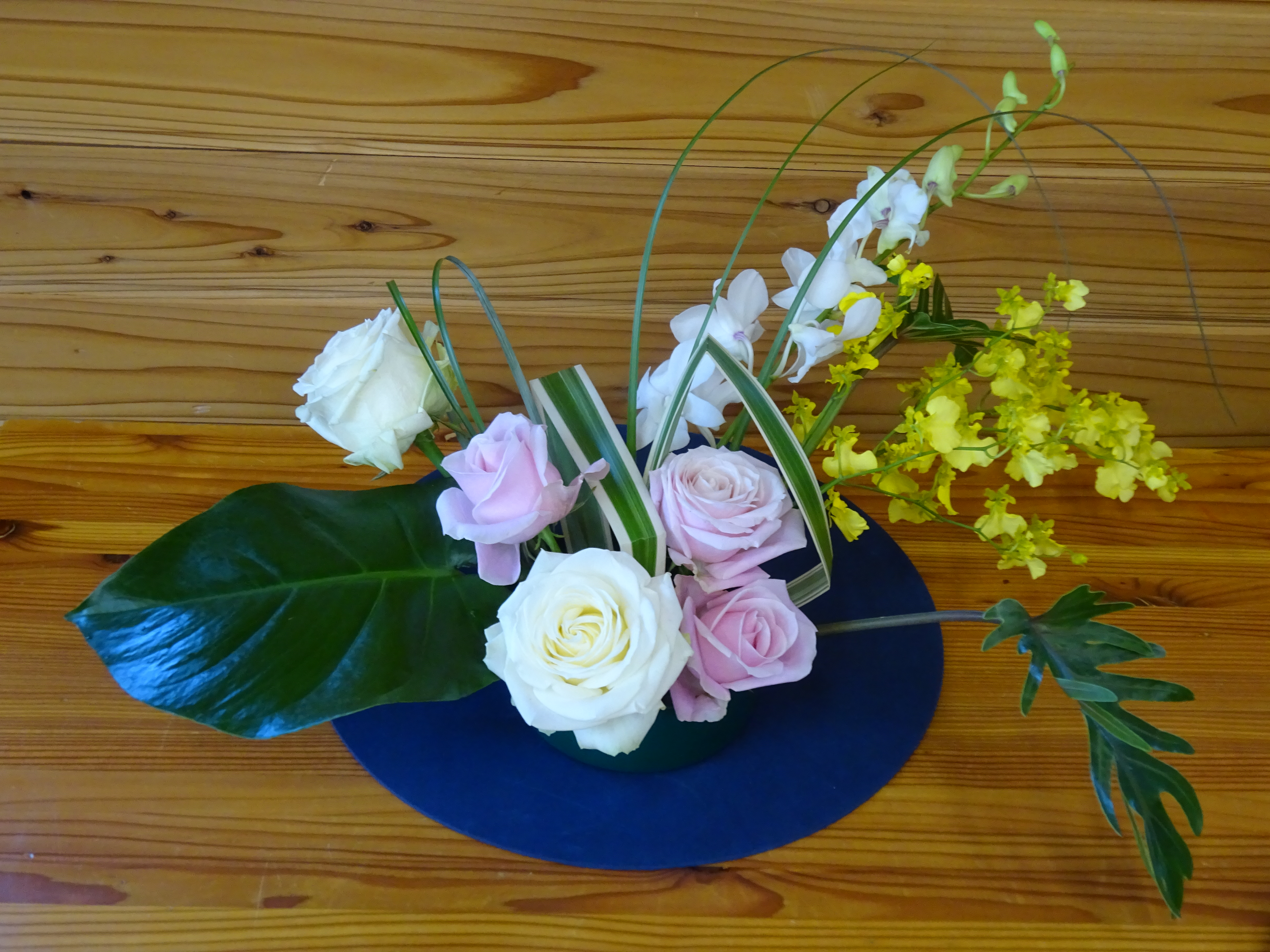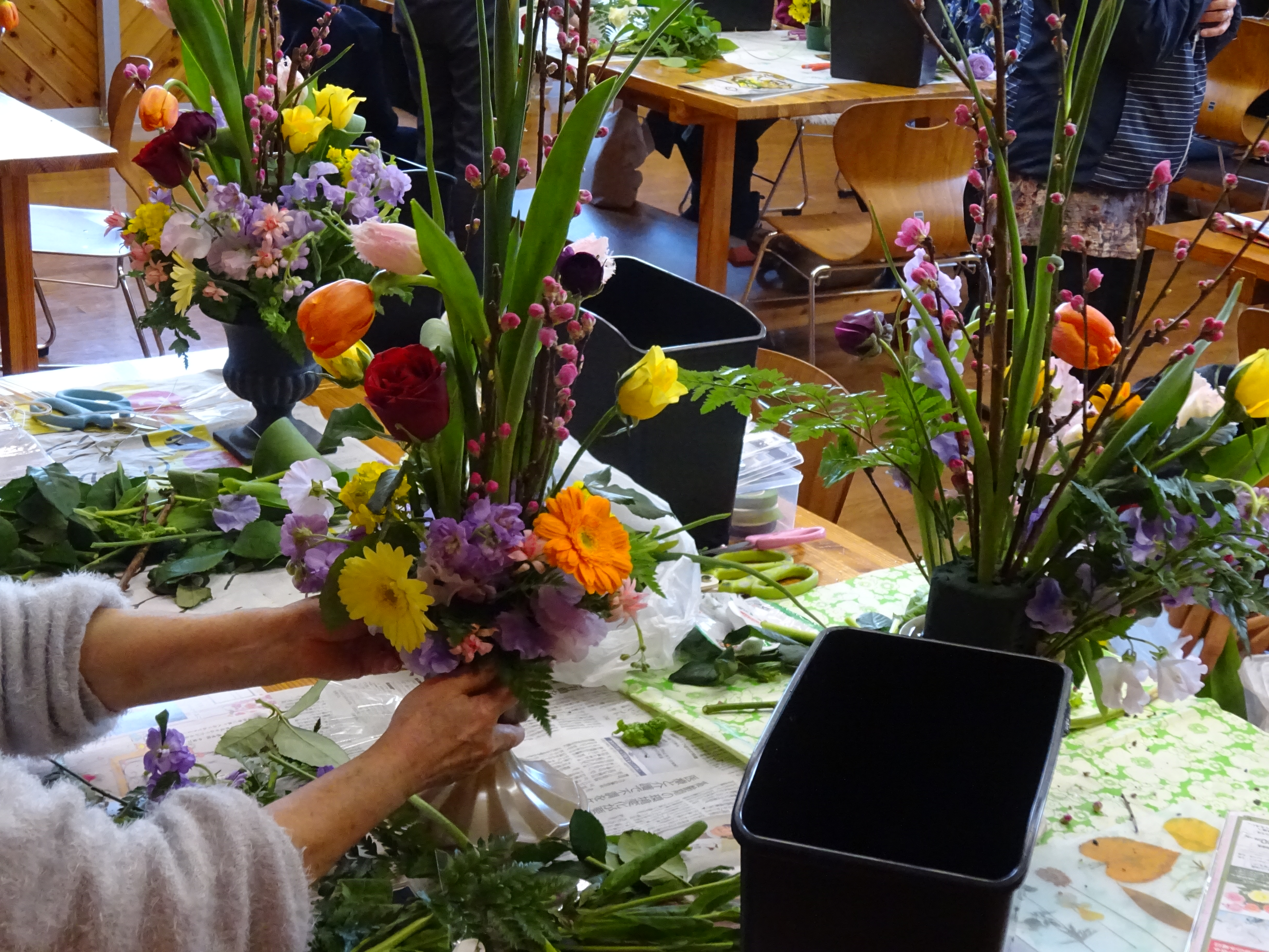 実際にメンバーの方にお話を伺うと、「元々お花が好きだったから、毎月のこの活動はとても楽しい。完成した作品は持ち帰って自宅に飾っており、家族から褒められるととても嬉しい。」とおっしゃっていました。その他にも、「この活動は個性が活かせる点がとても良い。また、お花を見ているととても癒される。」とのお話を伺うこともできました。
