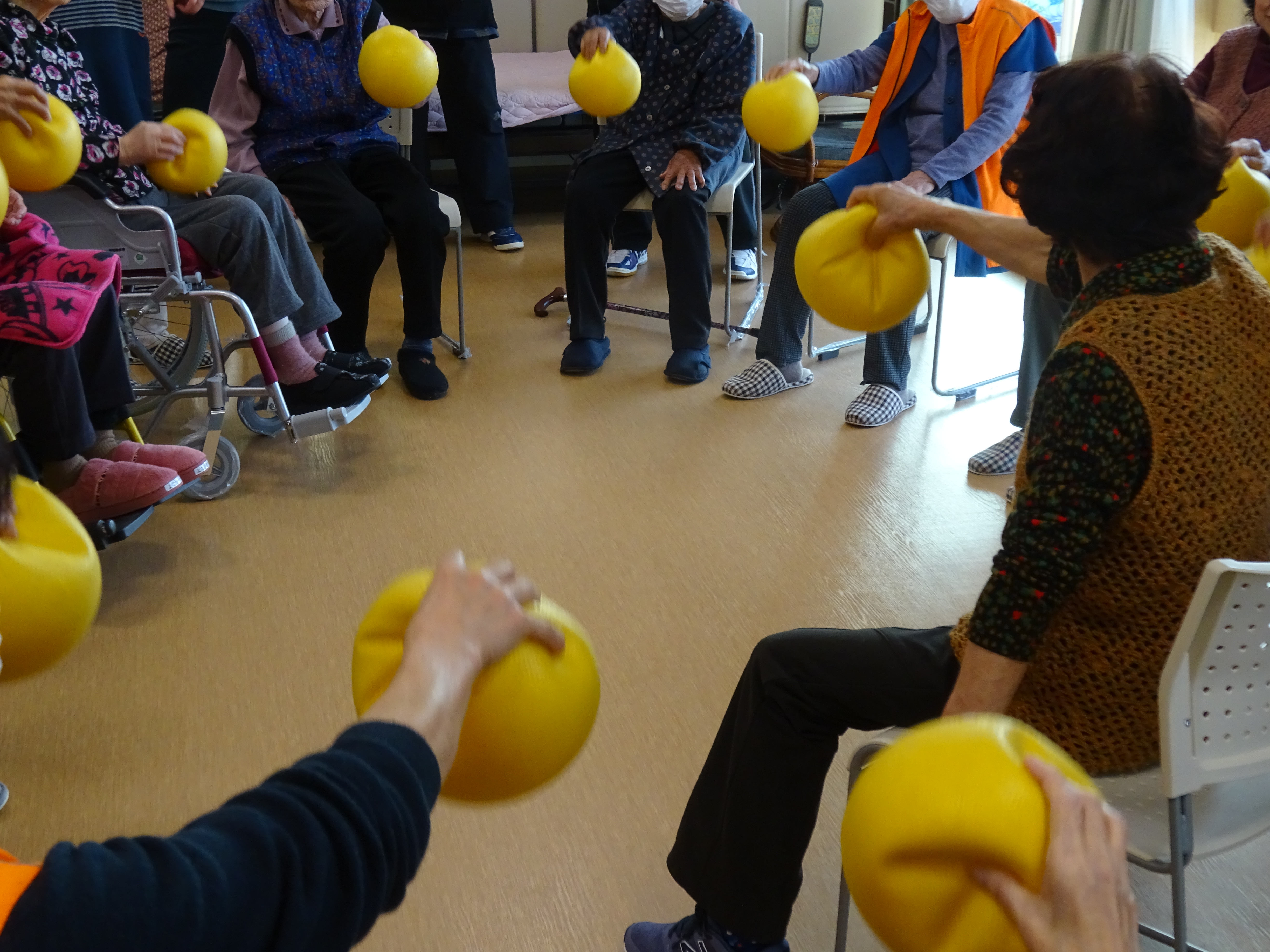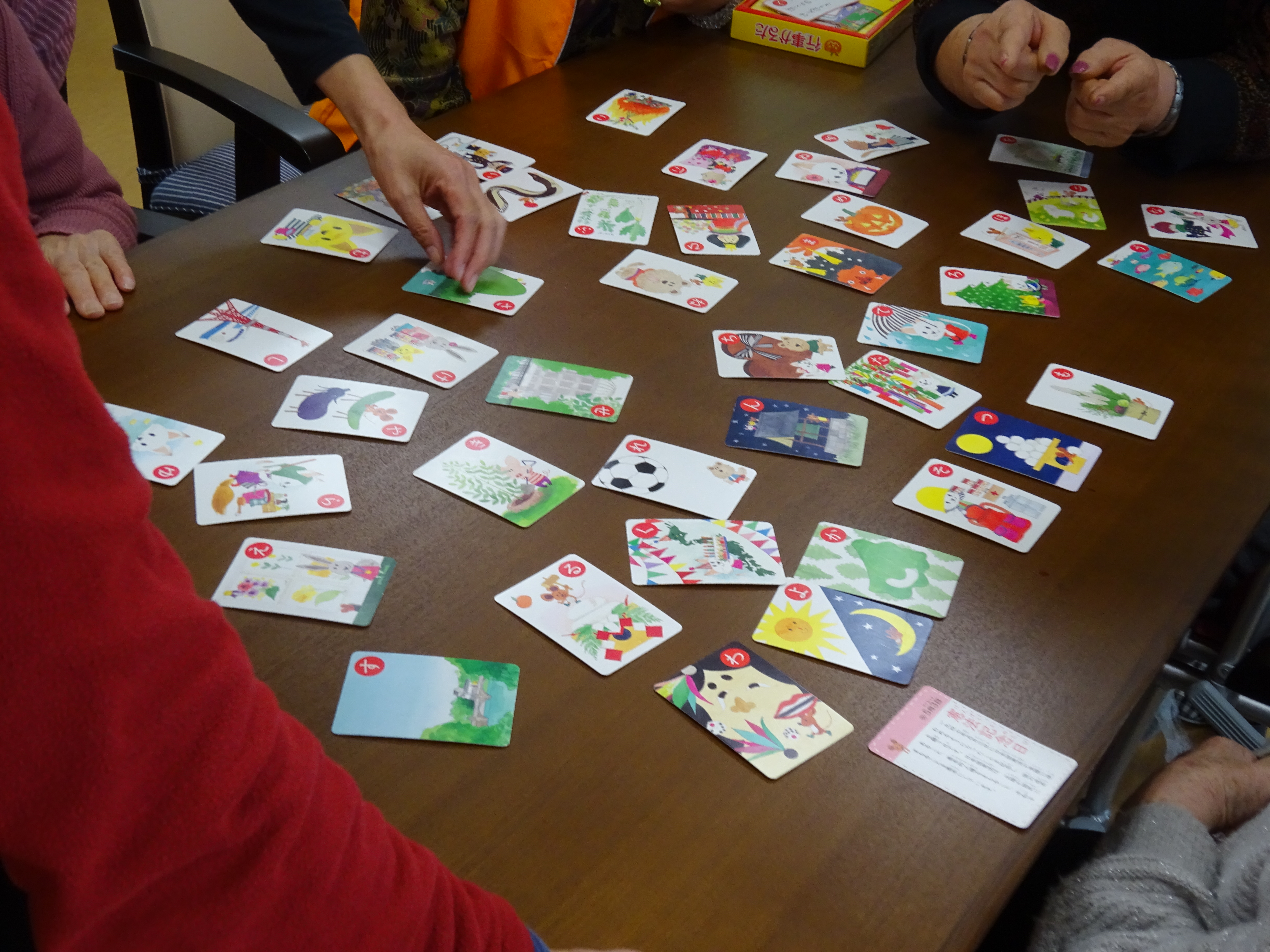 その他にもカルタやボールを使った指の運動、脳トレなども行い、利用者の方々との交流を深めました。