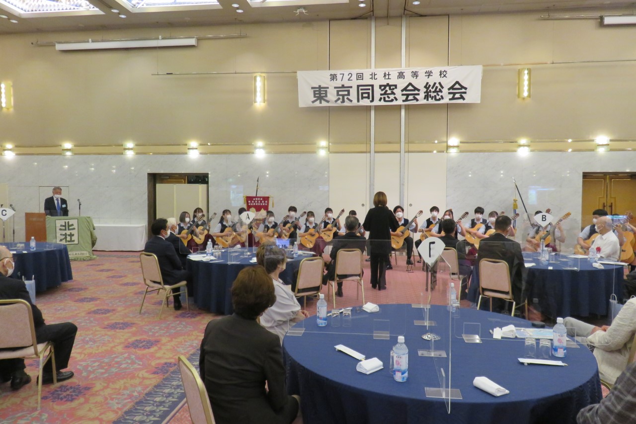 2022年7月17日 総会後の親睦会でギター部の演奏が披露された。全国学校ギター合奏コンクールの金賞・審査員特別賞受賞を受賞した後輩に、ねぎらいと羨望の拍手が送られた。美しい音色に母校の思い出が蘇り・・・・。